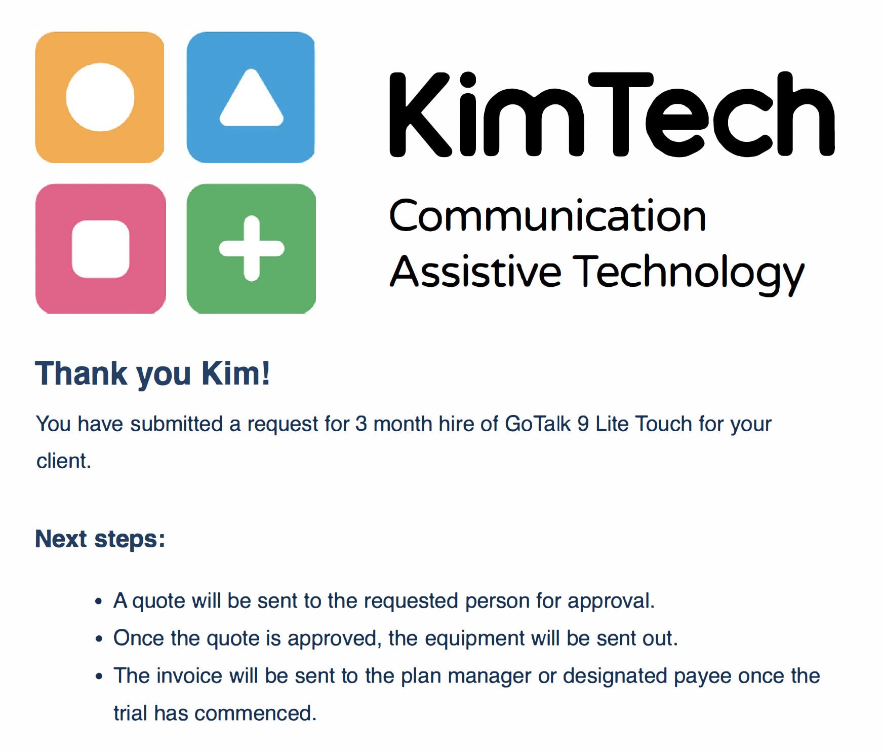 Introducing KimTech’s enhanced hire request form for communication devices and assistive technology trials